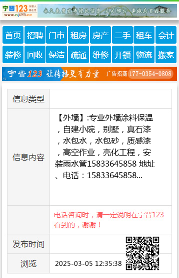 【外墙】:专业外墙涂料保温,自建小院,别墅,真石漆,水包水,水包砂,质感漆,高空作业,亮化工程,安装雨水管15833645858 地址、电话:15833645858 【电话咨询时,请一定说明在邢台123看到的,谢谢!】 |