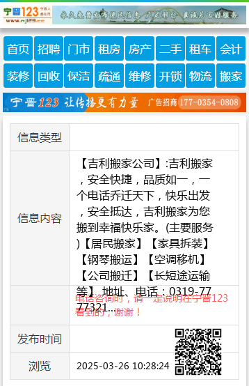 【吉利搬家公司】:吉利搬家,安全快捷,品质如一,一个电话乔迁天下,快乐出发,安全抵达,吉利搬家为您搬到幸福快乐家。(主要服务)【居民搬家】【家具拆装】【钢琴搬运】【空调移机】【公司搬迁】【长短途运输等】 地址、电话:0319-7777321 15097908804(微信同号)
