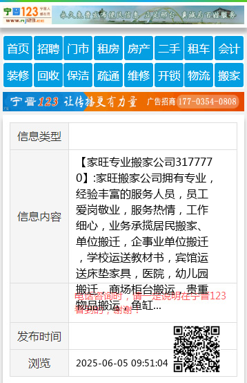 【家旺专业搬家公司3177770】:家旺搬家公司拥有专业,经验丰富的服务人员,员工爱岗敬业,服务热情,工作细心,业务承揽居民搬家、单位搬迁,企事业单位搬迁,学校运送教材书,宾馆运送床垫家具,医院,幼儿园搬迁,商场柜台搬运,贵重物品搬运,鱼缸,钢琴,保险柜等搬运,长短途快运,拆装维修各种中高档家具,办公家具,办公工位拆装,空调移机,壁挂电视拆装,家具维修,本公司拥有经验丰富技术熟练员工,物品搬运轻搬轻放,每一次服务会尽职尽责,让客户放心省心, 欢迎新老客户支持。15511998148 地址、电话:3177770 【电话咨询时,请一定说明在邢台123看到的,谢谢!】 |
