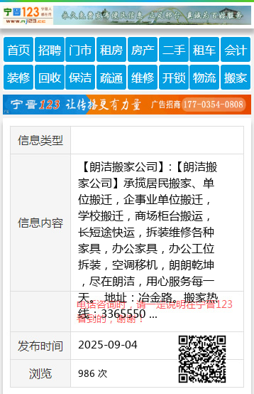 【朗洁搬家公司】:【朗洁搬家公司】承揽居民搬家、单位搬迁,企事业单位搬迁,学校搬迁,商场柜台搬运,长短途快运,拆装维修各种家具,办公家具,办公工位拆装,空调移机,朗朗乾坤,尽在朗洁,用心服务每一天。 地址:冶金路。搬家热线:3365550 地址、电话:冶金路3365550