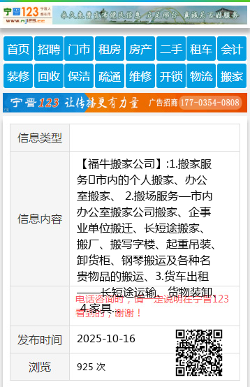 【福牛搬家公司】:1.搬家服务☞市内的个人搬家、办公室搬家、 2.搬场服务—市内办公室搬家公司搬家、企事业单位搬迁、长短途搬家、搬厂、搬写字楼、起重吊装、卸货柜、钢琴搬运及各种名贵物品的搬运、3.货车出租——长短途运输、货物装卸、 4.家具拆装——各种家具拆装、专业拆装人员为您服务、技术精湛、拆装迅速、让您满意放心、 5.包装服务——提供纸箱、6.劳务计时——适合搬运距离较近、只用人、不需用车的客户、 公司承诺:价格较低、服务较好。 地址、电话:7777730 |