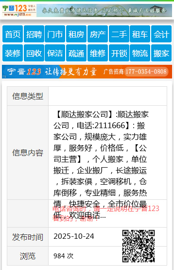 【顺达搬家公司】:顺达搬家公司,电话:2111666】: 搬家公司,规模庞大,实力雄厚,服务好,价格低,【公司主营】,个人搬家,单位搬迁,企业搬厂,长途搬运,拆装家俱,空调移机,仓库倒移,专业精细,服务热情,快捷安全,全市价位最低,欢迎电话垂询。 地址、电话:2111666,15632958973,地址:邢台信都区中华大街 地址、电话:15632958973 |