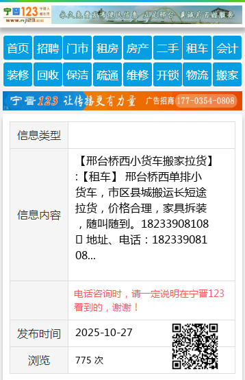 电话咨询时,请一定说明在邢台123看到的,谢谢!