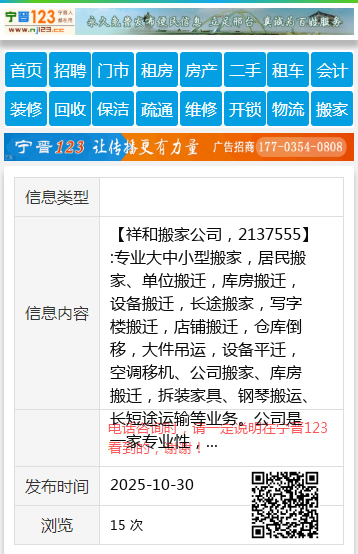【祥和搬家公司,2137555】:专业大中小型搬家,居民搬家、单位搬迁,库房搬迁,设备搬迁,长途搬家,写字楼搬迁,店铺搬迁,仓库倒移,大件吊运,设备平迁,空调移机、公司搬家、库房搬迁,拆装家具、钢琴搬运、长短途运输等业务。公司是一家专业性,重质量,讲信誉的大型正规般家公司,拥有多种车型和专业人员,他们经过严格的专业培训,熟练掌握物品包装,高难度家具拆卸及搬运技能,让客户搬家时,省心、放心、24小时竭诚为您服务 地址、电话:团结路,2137555---16630985432 |