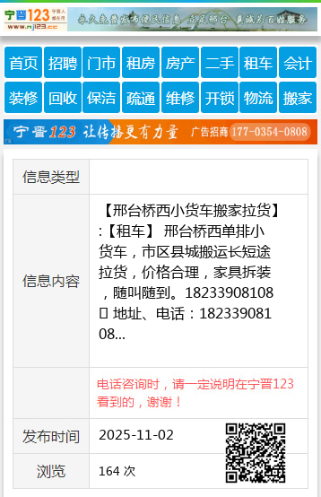 【微型搬家】:价格美丽欢迎下单,单排平板货车,长3.05宽1.56市区优惠☎17320857570搬家拉货均可。 地址、电话:邢东市场