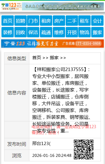 【祥和搬家公司2137555】:专业大中小型搬家,居民搬家、单位搬迁,库房搬迁,设备搬迁,长途搬家,写字楼搬迁,店铺搬迁,仓库倒移,大件吊运,设备平迁,空调移机、公司搬家、库房搬迁,拆装家具、钢琴搬运、长短途运输等业务。公司是一家专业性,重质量,讲信誉的大型正规般家公司,拥有多种车型和专业人员,他们经过严格的专业培训,熟练掌握物品包装,高难度家具拆卸及搬运技能,让客户搬家时,省心、放心、24小时竭诚为您服务 地址、电话:团结路,2137555---16630985432 【电话咨询时,请一定说明在邢台123看到的,谢谢!】 |