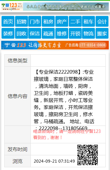 【专业保洁2222098】:专业擦玻璃,家庭日常整体保洁,清洗地面,墙砖,厨房,卫生间,地板打蜡,瓷砖美缝,新居开荒,小时工等业务。家庭保洁,开荒保洁擦玻璃,擦厨房卫生间,修水管,马桶疏通。 地址、电话:2222098--13180566945