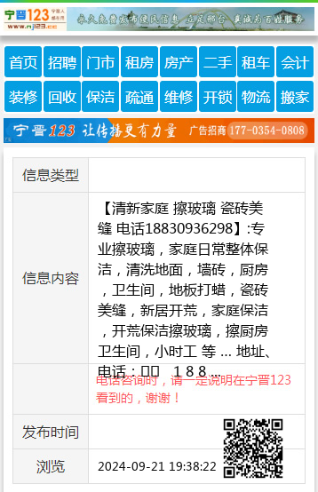 【清新家庭 擦玻璃 瓷砖美缝 电话18830936298】:专业擦玻璃,家庭日常整体保洁,清洗地面,墙砖,厨房,卫生间,地板打蜡,瓷砖美缝,新居开荒,家庭保洁,开荒保洁擦玻璃,擦厨房卫生间,小时工 等 … 地址、电话:☎️ 1 8 8 3 0 9 3 6 2 9 8
