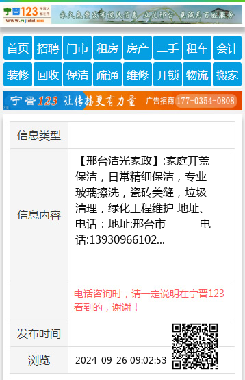 【邢台洁光家政】:家庭开荒保洁,日常精细保洁,专业玻璃擦洗,瓷砖美缝,垃圾清理,绿化工程维护 地址、电话:地址:邢台市 电话:13930966102