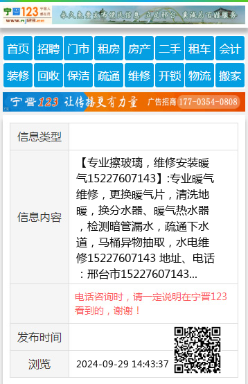 【专业擦玻璃,维修安装暖气15227607143】:专业暖气维修,更换暖气片,清洗地暖,换分水器、暖气热水器,检测暗管漏水,疏通下水道,马桶异物抽取,水电维修15227607143 地址、电话:邢台市15227607143