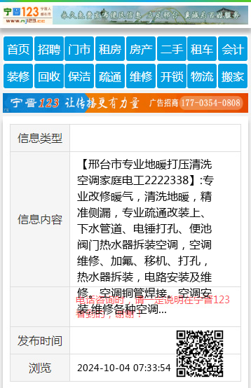 【邢台市专业地暖打压清洗空调家庭电工2222338】:专业改修暖气,清洗地暖,精准侧漏,专业疏通改装上、下水管道、电锤打孔、便池阀门热水器拆装空调,空调维修、加氟、移机、打孔,热水器拆装,电路安装及维修。空调铜管焊接。空调安装,维修各种空调的疑难杂症。电工、出售新空调、二手空调。高价回收空调(市内移机免费运输)。 地址、电话:邢台市2222338--15690375321 |