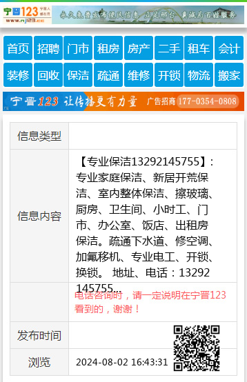【专业保洁13292145755】:专业家庭保洁、新居开荒保洁、室内整体保洁、擦玻璃、厨房、卫生间、小时工、门市、办公室、饭店、出租房保洁。疏通下水道、修空调、加氟移机、专业电工、开锁、换锁。 地址、电话:13292145755