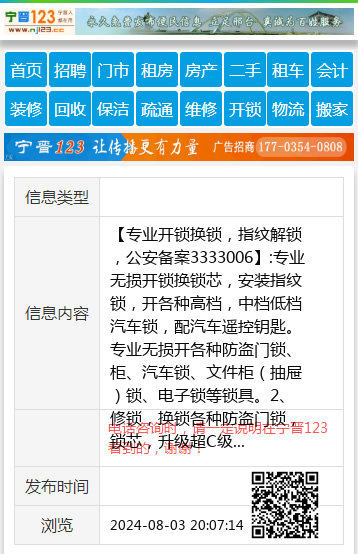 【专业开锁换锁,指纹解锁,公安备案3333006】:专业无损开锁换锁芯,安装指纹锁,开各种高档,中档低档汽车锁,配汽车遥控钥匙。专业无损开各种防盗门锁、柜、汽车锁、文件柜(抽屉)锁、电子锁等锁具。2、修锁,换锁各种防盗门锁,锁芯,升级超C级锁芯,柜、汽车锁、文件柜(抽屉)锁、、电子锁、闭门器、卷闸门锁、防火门锁、门铃、猫眼(可以开孔)等3、配钥匙、匹配汽车芯片钥匙、遥控器、车库门遥控器、门禁卡等,4、安装指纹锁,电动门,伸缩门,车库门锁。《工商注册,公安备案》 地址、电话:邢台市3333006--15632978857 |