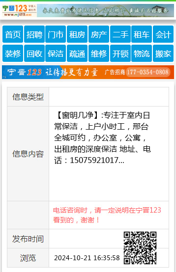 【窗明几净】:专注于室内日常保洁,上户小时工,邢台全城可约,办公室,公寓,出租房的深度保洁 地址、电话:15075921017