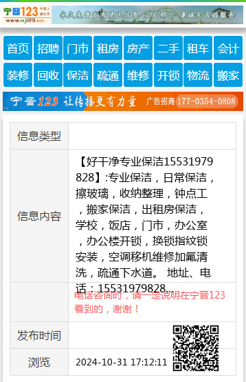 【好干净专业保洁15531979828】:专业保洁,日常保洁,擦玻璃,收纳整理,钟点工,搬家保洁,出租房保洁,学校,饭店,门市,办公室,办公楼开锁,换锁指纹锁安装,空调移机维修加氟清洗,疏通下水道。 地址、电话:15531979828