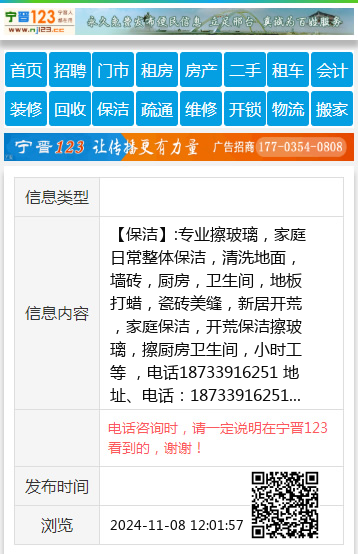 【保洁】:专业擦玻璃,家庭日常整体保洁,清洗地面,墙砖,厨房,卫生间,地板打蜡,瓷砖美缝,新居开荒,家庭保洁,开荒保洁擦玻璃,擦厨房卫生间,小时工 等 ,电话18733916251 地址、电话:18733916251