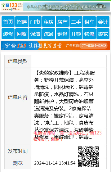 【炎燚家政维修】:工程类服务:新楼开荒保洁,高空外墙清洗,园林绿化,消毒消杀防疫,水晶灯清洗,石材翻新养护,大型厨房油烟管道清洗及安装。2家庭保洁类服务:搬家保洁,家电清洗,钟点工,地毯,真皮布艺沙发保养清洗,瓷砖美缝及修复,甲醛治理,消毒,砸墙上料,水电暖安装及维修。 地址、电话:15227679933
