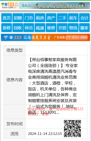 【邢台佰事帮家政服务有限公司(全国连锁)】:专业家电深度清洗高温蒸汽消毒专业商用油烟机清洗业务范围:大型酒店,酒楼,学校,饭店,机关单位,各种商业油烟机上门清洗及保养,定制烟管排烟系统安装及改装!一站式为您服务! 地址、电话:15130910818