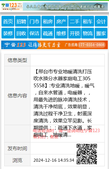 【邢台市专业地暖清洗打压吹水换分水器家庭电工305 5558】:专业清洗地暖,暖气,自来水管道,电暖器,,用最先进的脉冲清洗技术,清洗干净彻底,效果明显,清洗过程干净卫生,射蛋深度清洗,效果立竿见影。长期提供;;疏通下水道,家庭电工,地暖清洗上门专业家电清洗各种品牌空调,电热水器,太阳能热水器,全自动洗衣机,冰箱,地暖清洗,暖清气片等家电清洗 地址、电话:新八一路305 5558--15690392230 |