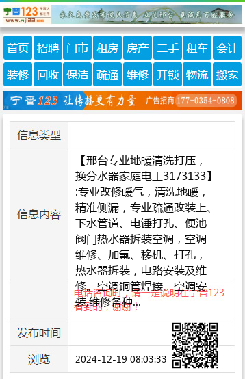 【邢台专业地暖清洗打压,换分水器家庭电工3173133】:专业改修暖气,清洗地暖,精准侧漏,专业疏通改装上、下水管道、电锤打孔、便池阀门热水器拆装空调,空调维修、加氟、移机、打孔,热水器拆装,电路安装及维修。空调铜管焊接。空调安装,维修各种空调的疑难杂症。电工、出售新空调、二手空调。高价回收空调(市内移机免费运输)。 地址、电话:邢台市3173133---13231925363 |
