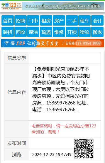 【免费封阳光房顶保25年不漏水】:市区内免费安装封阳光房顶防雨隔热,个人门市顶厂房顶,六层以下老旧破楼房房顶,无遮挡采光好的房源,15369976266 地址、电话:15369976266