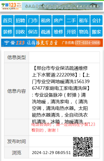【邢台市专业保洁疏通维修上下水管道:2222098】:【上门专业空调地暖清洗15613967477家庭电工家电清洗保】: 专业设备脉冲(射弹)清洗地暖,清洗家电,(清洗空调,清洗电热水器。太阳能热水器清洗,全自动洗衣机清洗,冰箱,地暖清洗,暖气片清洗按装)等。水管维修,更换水龙头,阀门,地漏水管地暖打压,精准测漏。邢台市维修电话15613967477 地址、电话:2222098手机:13082026377 |