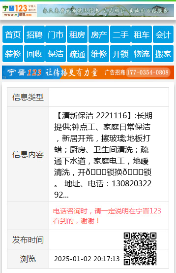 【清新保洁 2221116】:长期提供;钟点工、家庭日常保洁,新居开荒,擦玻璃;地板打蜡;厨房、卫生间清洗;疏通下水道,家庭电工,地暖清洗,开🔒锁换🔒锁。 地址、电话:13082032292
