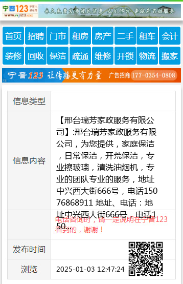 【邢台瑞芳家政服务有限公司】:邢台瑞芳家政服务有限公司,为您提供,家庭保洁,日常保洁,开荒保洁,专业擦玻璃,清洗油烟机,专业的团队专业的服务,地址中兴西大街666号,电话15076868911 地址、电话:地址中兴西大街666号,电话15076868911