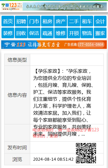 【孕乐家政】:“孕乐家政,为您提供全方位的专业培训,包括月嫂、育儿嫂、保姆、护工、保洁等家政服务。我们注重细节,提供个性化育儿方案,科学护理老人,高效清洁家居。加入我们,让每个家庭都能享受到贴心、专业的家政服务,共创美好未来。同时提供月嫂,育儿嫂,保姆,护工,临床陪护,小时工,不考核不派单,免费培训毕业安排工作。15075917935】 地址、电话:信都区工人村电话15075917935 |