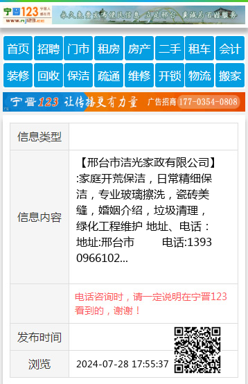 【邢台市洁光家政有限公司】:家庭开荒保洁,日常精细保洁,专业玻璃擦洗,瓷砖美缝,婚姻介绍,垃圾清理,绿化工程维护 地址、电话:地址:邢台市 电话:13930966102