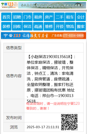 【小赵保洁19030135618】:单位家庭保洁,擦玻璃,整体保洁,精细保洁,开荒保洁,钟点工,清洗:家电清洗,厨房管道,座便疏通,全屋收纳整理,搬家打包还原,擦玻璃团购有优惠 地址、电话:邢台市—19030135618