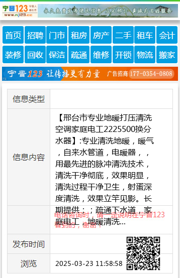 【邢台市专业地暖打压清洗空调家庭电工2225500换分水器】:专业清洗地暖,暖气,自来水管道,电暖器,,用最先进的脉冲清洗技术,清洗干净彻底,效果明显,清洗过程干净卫生,射蛋深度清洗,效果立竿见影。长期提供;;疏通下水道,家庭电工,地暖清洗上门专业家电清洗各种品牌空调,电热水器,太阳能热水器,全自动洗衣机,冰箱,地暖清洗,暖清气片等家电清洗邢台市维修电话16633966179 地址、电话:桥东16633966179桥西2225500 |