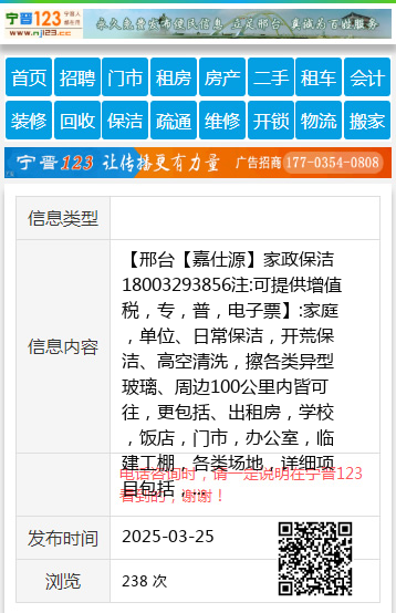 【邢台【嘉仕源】家政保洁18003293856注:可提供增值税,专,普,电子票】:家庭,单位、日常保洁,开荒保洁、高空清洗,擦各类异型玻璃、周边100公里内皆可往,更包括、出租房,学校,饭店,门市,办公室,临建工棚,各类场地,详细项目包括,洗地毯、洗灯,洗布艺真皮沙发,洗油烟机,洗鱼缸,换各种窗纱,地板打碏,部分家俱全搬运,部分垃圾清运,提供人工干其它杂活,消毒灭蚊蝇,美缝,管道疏通, 地址、电话:热线18003293856全天候,负责人小胡18003293856 保洁 |