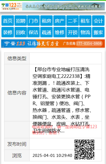 【邢台市专业地暖打压清洗空调家庭电工2222338】:精准测漏,!疏通改装上、下水管道、疏通污水管道、电锤打孔、安装更换水管(PPR、铝塑管)便池、阀门、热水器,疏通管道,修水管、换阀门、水龙头、水表,坐便器便盆、皮碗、水钻打孔卫生间做防水、建筑杂活疏通各种疑难下水道、上下水安装、空调移机加氟、挖凿门口、墙、地面,修装太阳能热水器,地暖暖气、地暖打压清洗,专业电工,电焊工上门服务,专业美缝,开锁换锁,家庭保洁,修装学校商场中央空调,修装消防管道、修装各种消防喷头 地址、电话:桥西冶金路桥东开元路2222338--15690375321 |