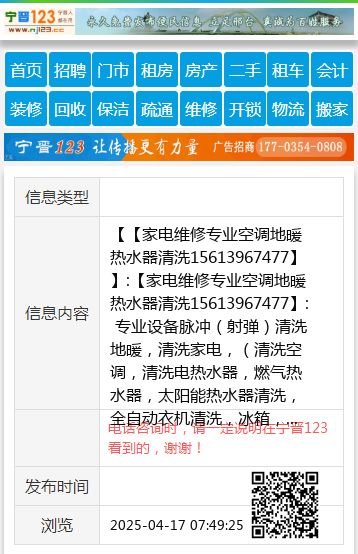 【【家电维修专业空调地暖热水器清洗15613967477】】:【家电维修专业空调地暖热水器清洗15613967477】: 专业设备脉冲(射弹)清洗地暖,清洗家电,(清洗空调,清洗电热水器,燃气热水器,太阳能热水器清洗,全自动衣机清洗,冰箱,地暖清洗,暖气片清洗按)等。水管维修,更换水龙头,阀门,漏水管地暖打压,精准测漏。家庭电工:灯具安装,灯具维修,电路漏电检测,更换电闸,插座等服务,按装液晶电视,油烟机,热水器,维修冰箱冰柜油烟机热水器液晶电视微波炉,回收空调各种家电。邢台市维修电话15613967477 地址、电话:邢台市维修电话15613967477 |