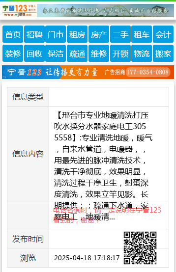 【邢台市专业地暖清洗打压吹水换分水器家庭电工305 5558】:专业清洗地暖,暖气,自来水管道,电暖器,,用最先进的脉冲清洗技术,清洗干净彻底,效果明显,清洗过程干净卫生,射蛋深度清洗,效果立竿见影。长期提供;;疏通下水道,家庭电工,地暖清洗上门专业家电清洗各种品牌空调,电热水器,太阳能热水器,全自动洗衣机,冰箱,地暖清洗,暖清气片等家电清洗 地址、电话:305 5558--15690392230 |