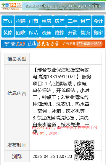 【邢台专业保洁地暖空调家电清洗13315911021】:服务项目: 1.专业擦玻璃,家庭,单位保洁,开荒保洁,小时工,钟点工;2,专业清洗各种油烟机,洗衣机,热水器,空调,冰箱,饮水机等;3.专业疏通清洗地暖,清洗自来水管道,技术先进,干净彻底,更换分水器;4.专业管道疏通,疏通厨卫下水道,马桶;5.更换各种窗纱;6,开锁,换锁;7.甲醛检测,治理;8.食堂,饭店,酒店大型油烟机烟罩烟道净化器清洗,承接学校,单位等各种保洁。从业多年,收费合理 地址、电话:桥东5208787桥西2224399 |