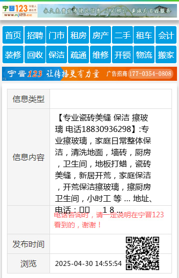 【专业瓷砖美缝 保洁 擦玻璃 电话18830936298】:专业擦玻璃,家庭日常整体保洁,清洗地面,墙砖,厨房,卫生间,地板打蜡,瓷砖美缝,新居开荒,家庭保洁,开荒保洁擦玻璃,擦厨房卫生间,小时工 等 … 地址、电话:☎️ 1 8 8 3 0 9 3 6 2 9 8