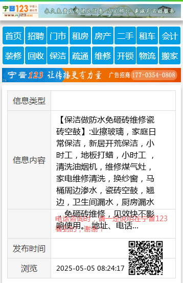 【保洁做防水免砸砖维修瓷砖空鼓】:业擦玻璃,家庭日常保洁,新居开荒保洁,小时工,地板打蜡,小时工 ,清洗油烟机,维修煤气灶,家电维修清洗,换纱窗,马桶周边渗水,瓷砖空鼓,翘边,卫生间漏水,厨房漏水,免砸砖维修,见效快不影响使用。 地址、电话:13113453777