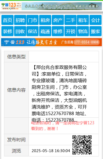 【邢台兆合家政服务有限公司】:家庭单位,日常保洁,专业擦玻璃,清洗地面墙砖厨房卫生间,门市,办公室,出租房保洁。家电清洗,新房开荒保洁,大型油烟机清洗维护,资质齐全,可开票电话15227670788 地址、电话:15227670788
