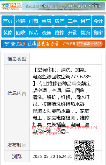 【空调移机、清洗、加氟、电路监测回收空调777 6789】:专业维修各种品牌变频定频空调,空调加氟,回收,清洗。移机,维修。墙体打眼。按装清洗维修热水器,修装太阳能热水器,。家庭电工,家庭电路检测,维修灯具,更换插座,电闸,漏电保护器,浴霸开关,太阳能移机维修清洗,电热水器按装维修清洗,更换热水器。家庭水暖改装维修,更换暖气片,维修更换水管水龙头上下水管。修装学校商场中央空调,消防管道、喷头。 地址、电话:服务电话777 6789一15631997277 |