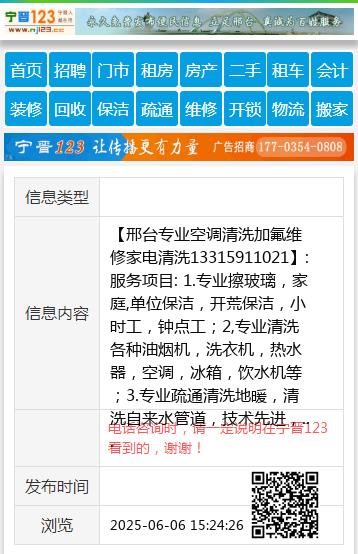 【邢台专业空调清洗加氟维修家电清洗13315911021】:服务项目: 1.专业擦玻璃,家庭,单位保洁,开荒保洁,小时工,钟点工;2,专业清洗各种油烟机,洗衣机,热水器,空调,冰箱,饮水机等;3.专业疏通清洗地暖,清洗自来水管道,技术先进,干净彻底,更换分水器;4.专业管道疏通,疏通厨卫下水道,马桶;5.更换各种窗纱;6,开锁,换锁;7.甲醛检测,治理;8.食堂,饭店,酒店大型油烟机烟罩烟道净化器清洗,承接学校,单位等各种保洁。从业多年,收费合理 地址、电话:桥东5208787桥西2224399 |