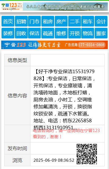 【好干净专业保洁15531979828】:专业保洁,日常保洁,开荒保洁,专业擦玻璃,清洗墙砖地面,木地板打蜡,厨房去油,小时工,空调维修加氟清洗,开锁,换锁指纹锁安装,疏通下水管道。 地址、电话:桥东2265858桥西13131910951