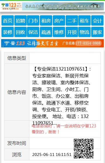 【专业保洁13211097651】:专业家庭保洁、新居开荒保洁、擦玻璃、室内整体保洁、厨房、卫生间、小时工、门市、饭店、办公室、出租房保洁。疏通下水道、移修空调、专业电工、开锁/换锁、按坐便。 地址、电话:13211097651