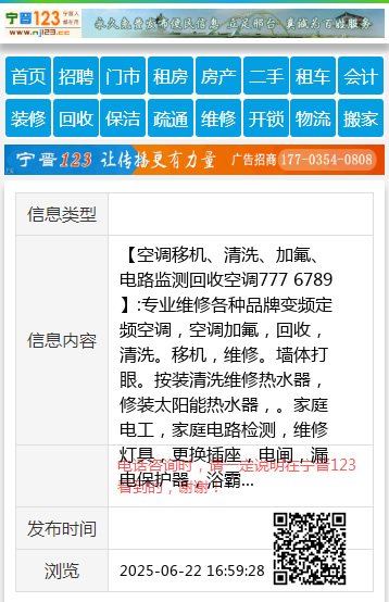 【空调移机、清洗、加氟、电路监测回收空调777 6789】:专业维修各种品牌变频定频空调,空调加氟,回收,清洗。移机,维修。墙体打眼。按装清洗维修热水器,修装太阳能热水器,。家庭电工,家庭电路检测,维修灯具,更换插座,电闸,漏电保护器,浴霸开关,太阳能移机维修清洗,电热水器按装维修清洗,更换热水器。家庭水暖改装维修,更换暖气片,维修更换水管水龙头上下水管。修装学校商场中央空调,消防管道、喷头。 地址、电话:服务电话7776789一15631997277 |