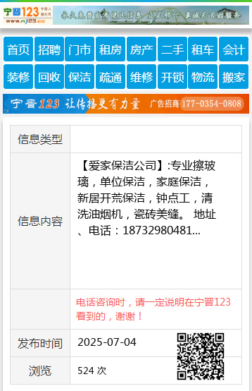 【爱家保洁公司】:专业擦玻璃,单位保洁,家庭保洁,新居开荒保洁,钟点工,清洗油烟机,瓷砖美缝。 地址、电话:18732980481
