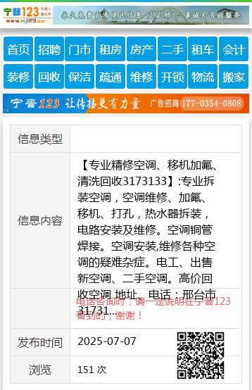免责声明:本栏目信息由网友自行发布,邢台123不承担任何责任!提高警惕,谨防诈骗!做推广、做信息置顶!请加邢台123客服微信:cnxingtai