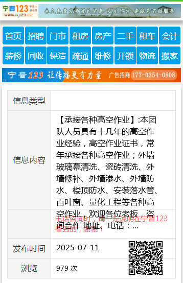 【承接各种高空作业】:本团队人员具有十几年的高空作业经验,高空作业证书,常年承接各种高空作业;外墙玻璃幕清洗、瓷砖清洗、外墙修补、外墙渗水、外墙防水、楼顶防水、安装落水管、百叶窗、量化工程等各种高空作业,欢迎各位老板,咨询合作 地址、电话:襄都区18333456752
