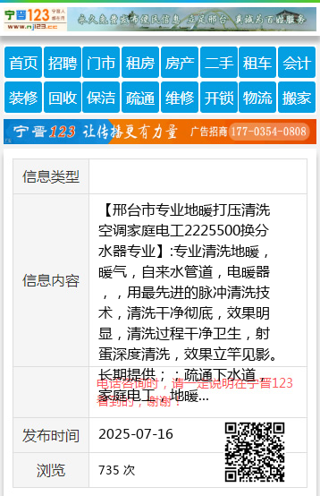 【邢台市专业地暖打压清洗空调家庭电工2225500换分水器专业】:专业清洗地暖,暖气,自来水管道,电暖器,,用最先进的脉冲清洗技术,清洗干净彻底,效果明显,清洗过程干净卫生,射蛋深度清洗,效果立竿见影。长期提供;;疏通下水道,家庭电工,地暖清洗上门专业家电清洗各种品牌空调,电热水器,太阳能热水器,全自动洗衣机,冰箱,地暖清洗,暖清气片等家电清洗邢台市维修电话16633966179 地址、电话:桥东16633966179桥西2225500 |