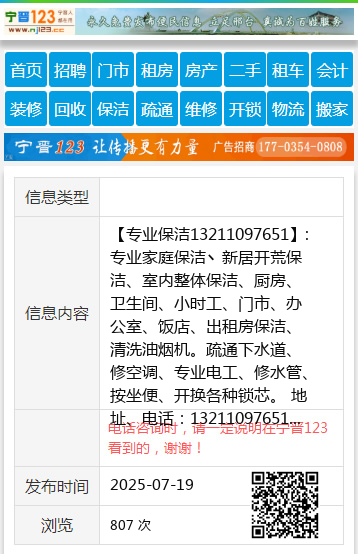 【专业保洁13211097651】:专业家庭保洁丶新居开荒保洁、室内整体保洁、厨房、卫生间、小时工、门市、办公室、饭店、出租房保洁、清洗油烟机。疏通下水道、修空调、专业电工、修水管、按坐便、开换各种锁芯。 地址、电话:13211097651